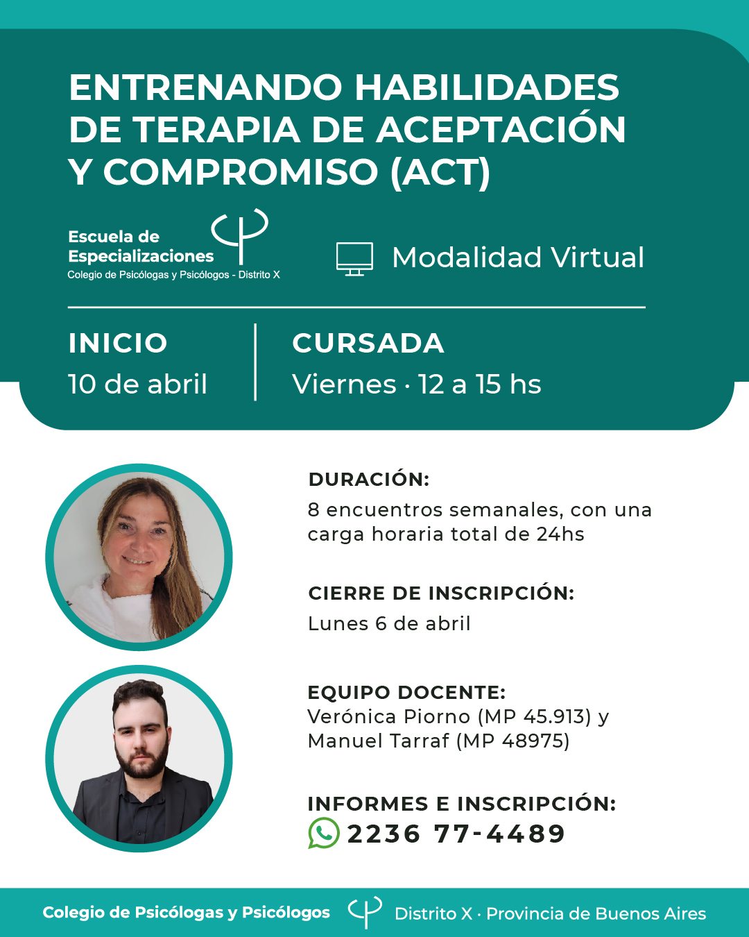 Entrenamiento en Habilidades Clínicas del terapeuta Contextual Conductual.