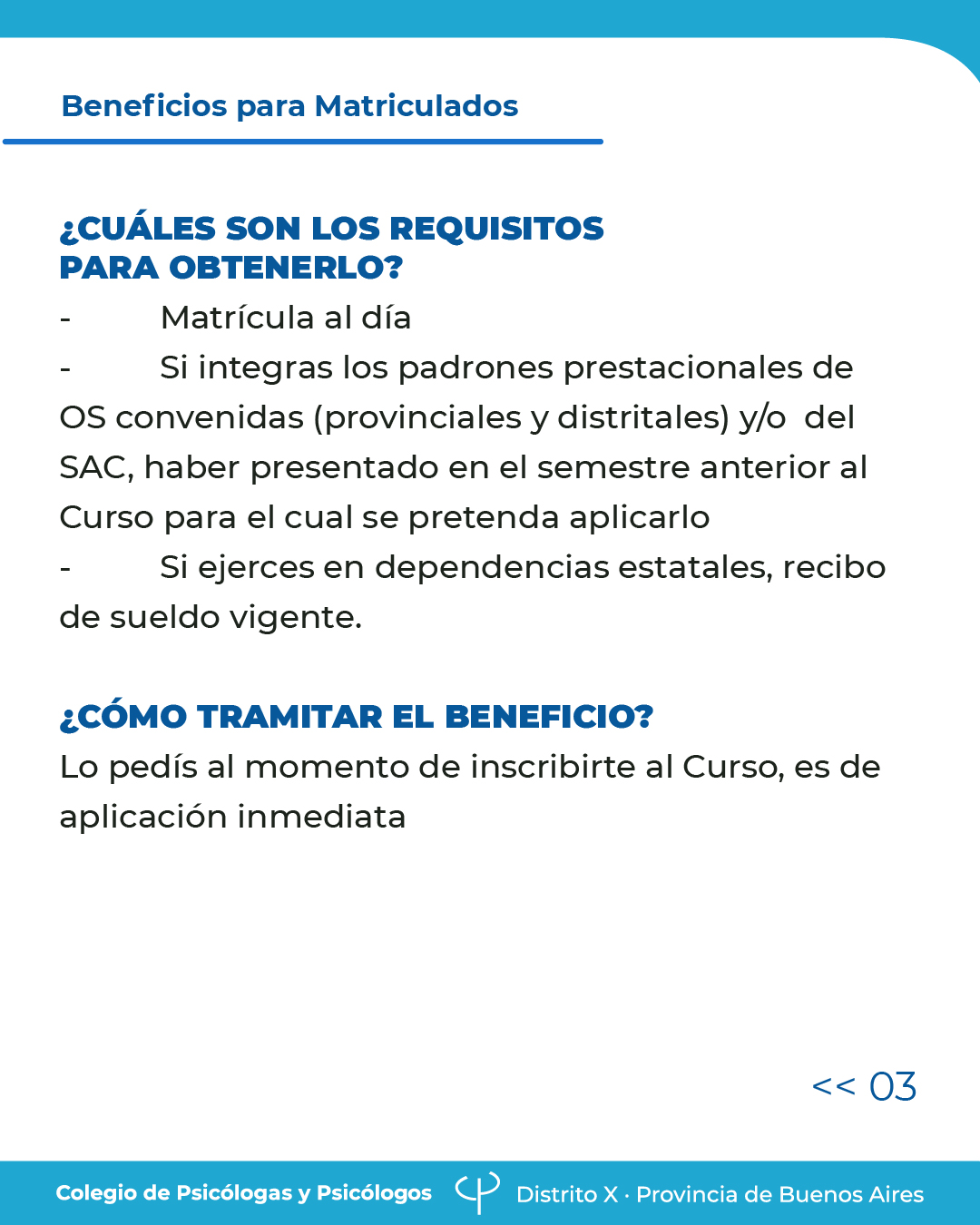 • Beneficios para los matriculados