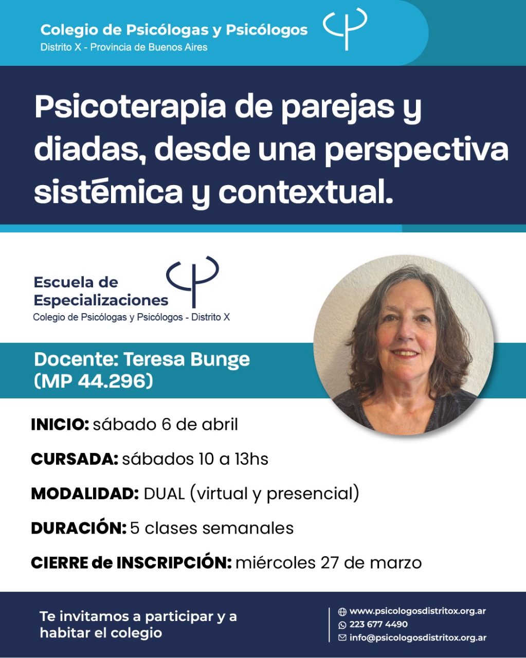 Psicoterapia de parejas y díadas, desde una perspectiva sistémica y contextual.